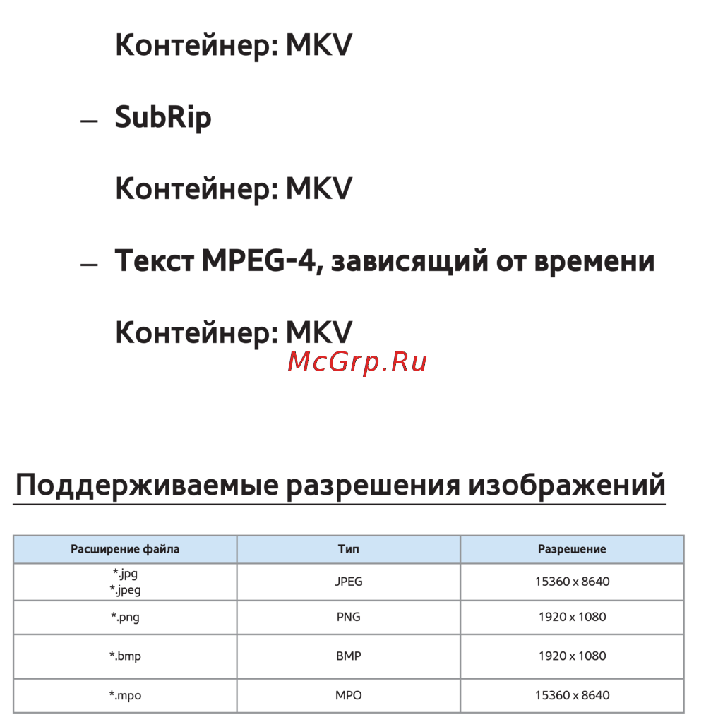 Samsung UE40 ES6100W [894/943] Поддерживаемые разрешения изображений