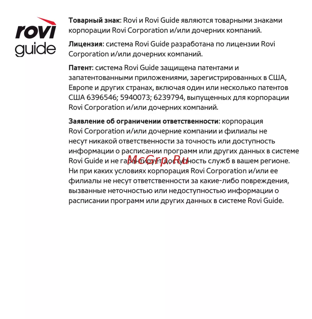 Товарный знак: Rovi и Rovi Guide являются товарными знаками