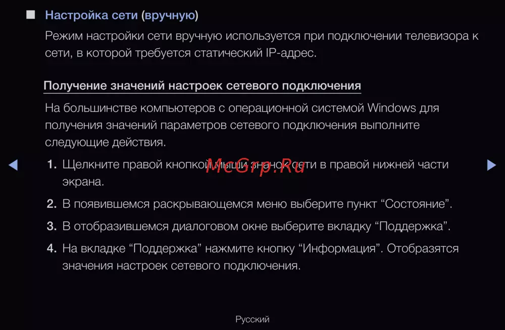 Режим настройки сети вручную используется при подключении телевизора к