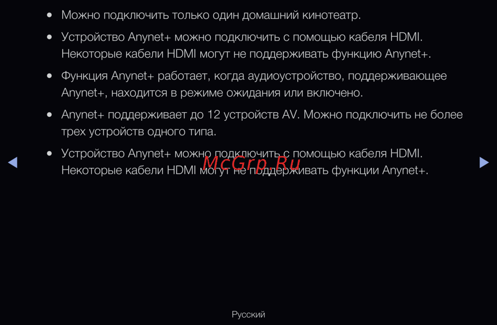 - Anynet поддерживает до 12 устройств av можно подключить не более трех устройств одного типа p.214