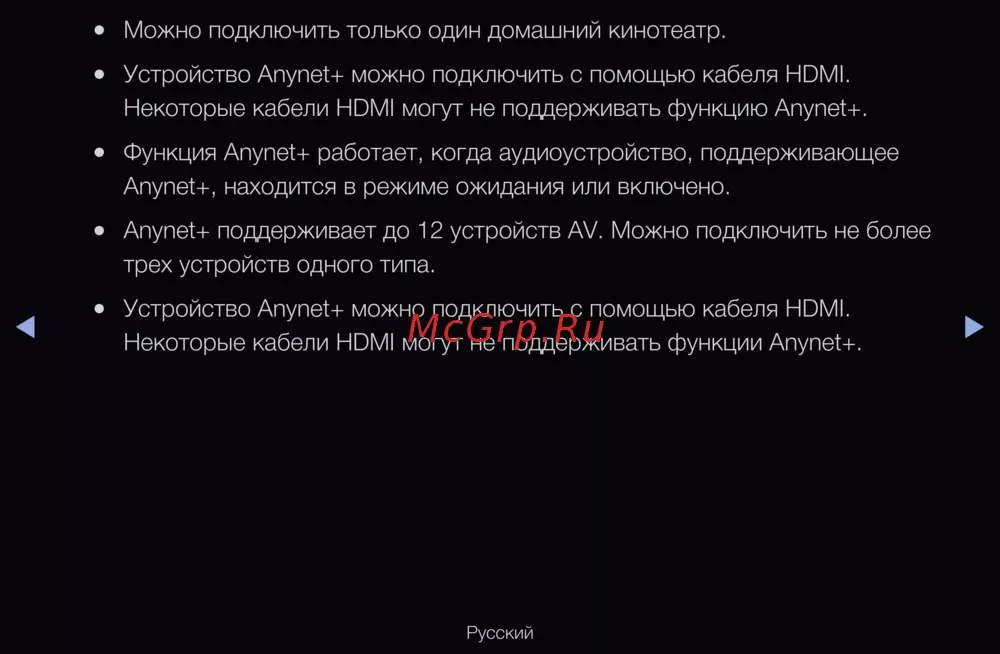 Anynet+ поддерживает до 12 устройств AV. Можно подключить не более