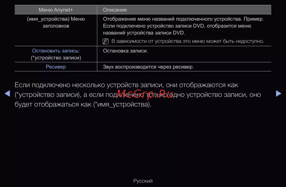 - Anynet поддерживает до 12 устройств av можно подключить не более трех устройств одного типа p.214