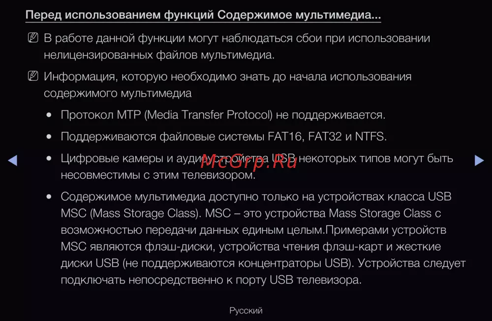 Содержимое мультимедиа доступно только на устройствах класса USB