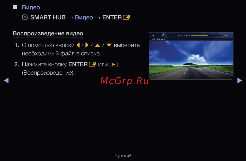 - С помощью кнопок вверх вниз вправо влево перейдите к нужному файлу а затем нажмите кнопку enter e или воспроизведение начнется воспроизведение файла p.233