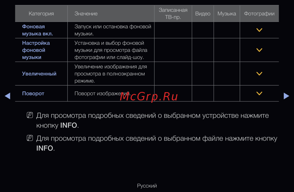 ![Samsung UE-46 D6100SW [265/318] Для просмотра подробных сведений о выбранном файле нажмите кнопку info](/views2/1066417/page265/bg109.png)