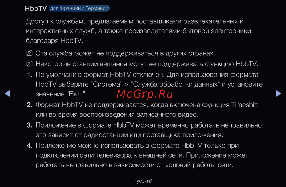 1. По умолчанию формат HbbTV отключен. Для использования формата