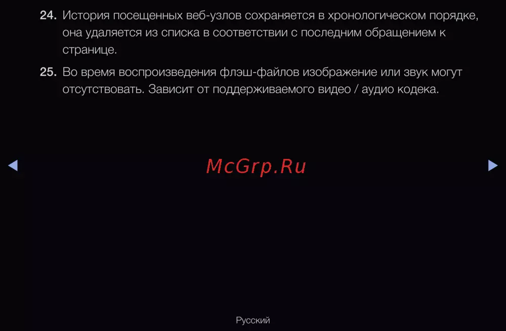 25. Во время воспроизведения флэш-файлов изображение или звук могут