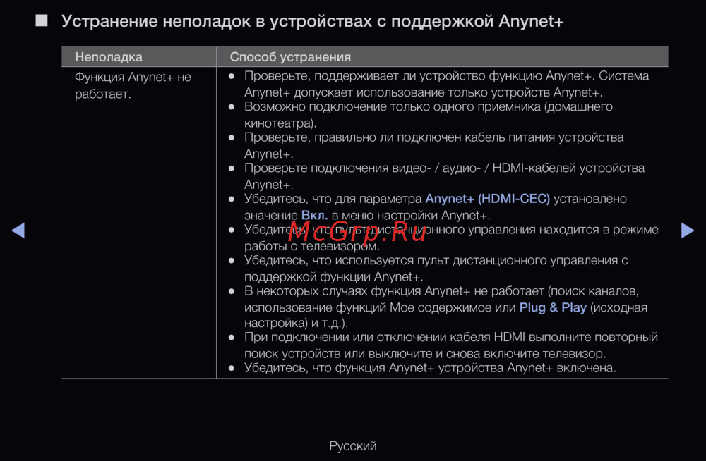 Устранение неполадок в устройствах с поддержкой Anynet+