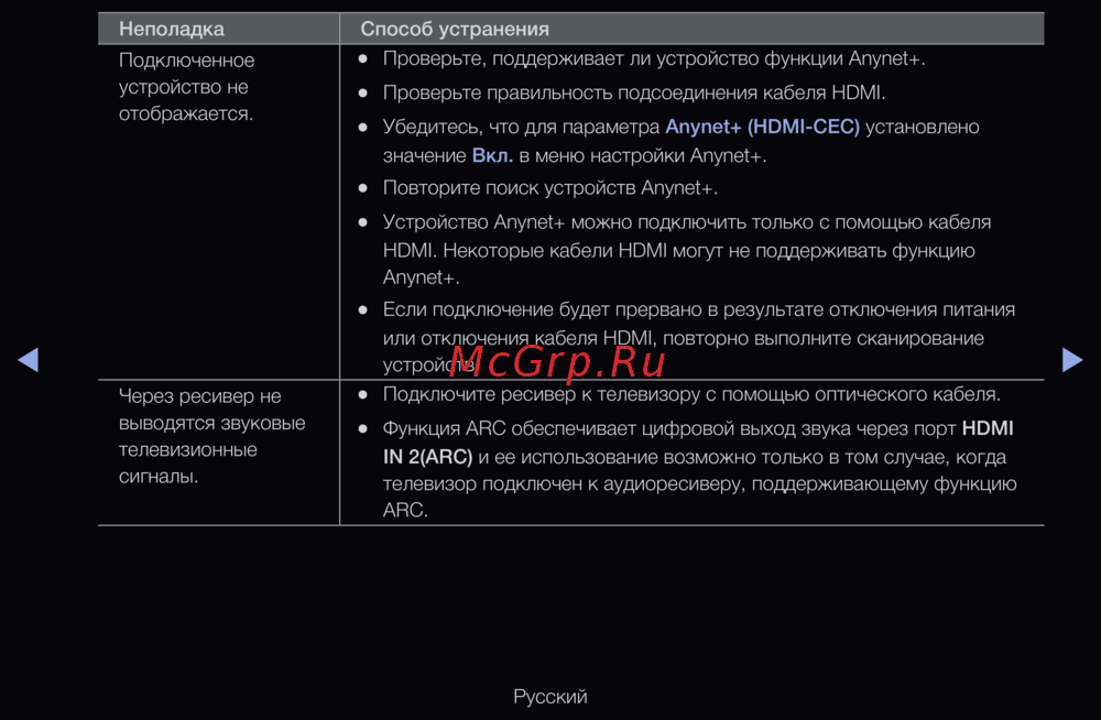 - Устранение неполадок в устройствах с поддержкой anynet p.279