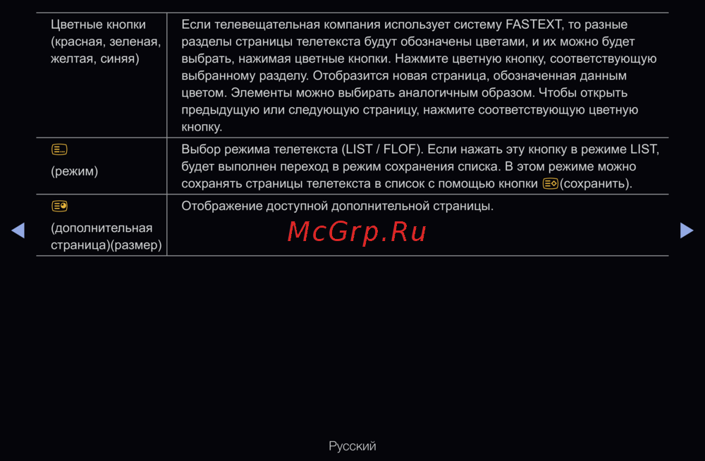 предыдущую или следующую страницу, нажмите соответствующую цветную