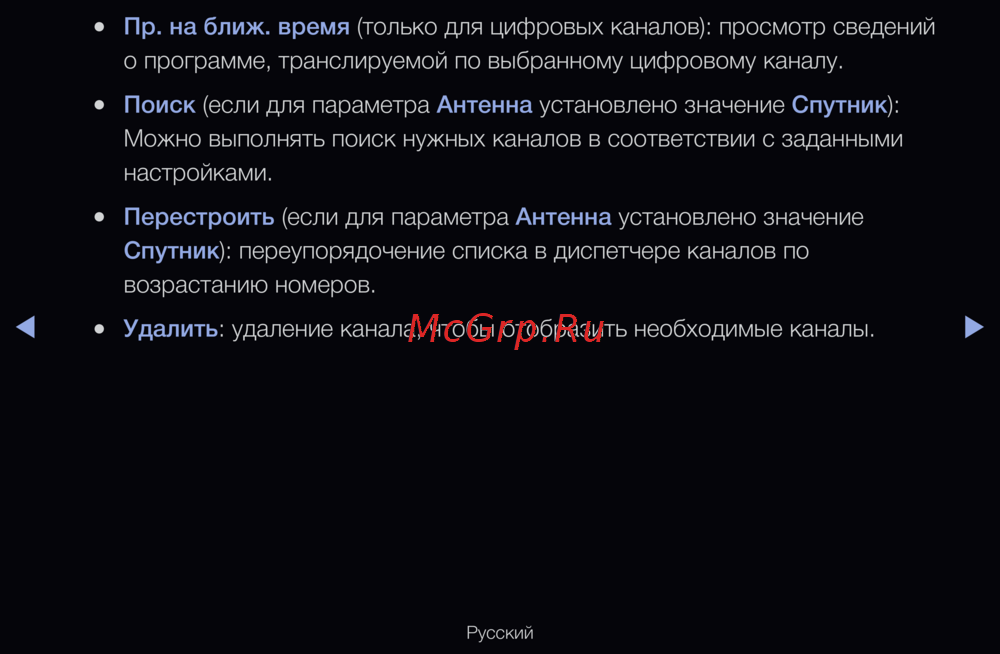 Пр. на ближ. время (только для цифровых каналов): просмотр сведений