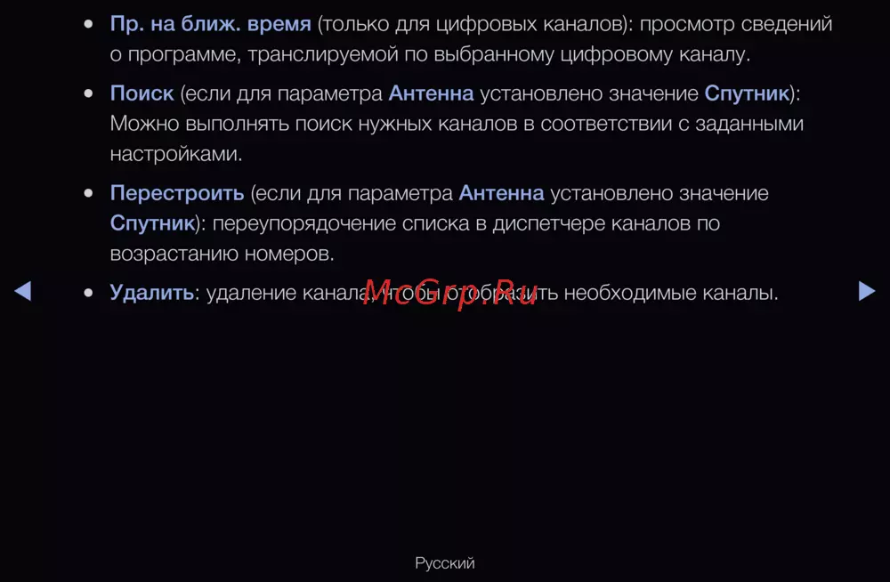 - При нажатии кнопки ch list на пульте дистанционного управления сразу отобразится экран список каналов p.10