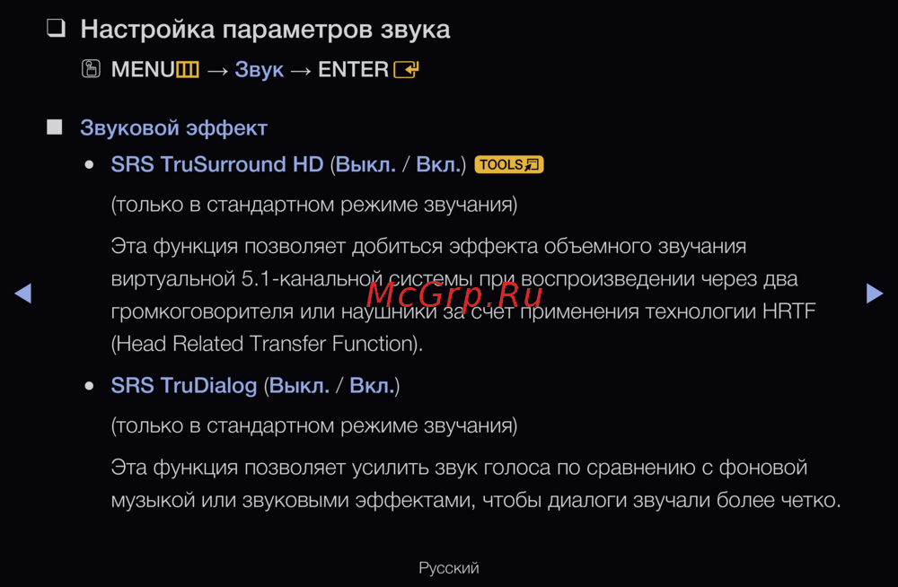 SRS TruDialog (Выкл. / Вкл.)