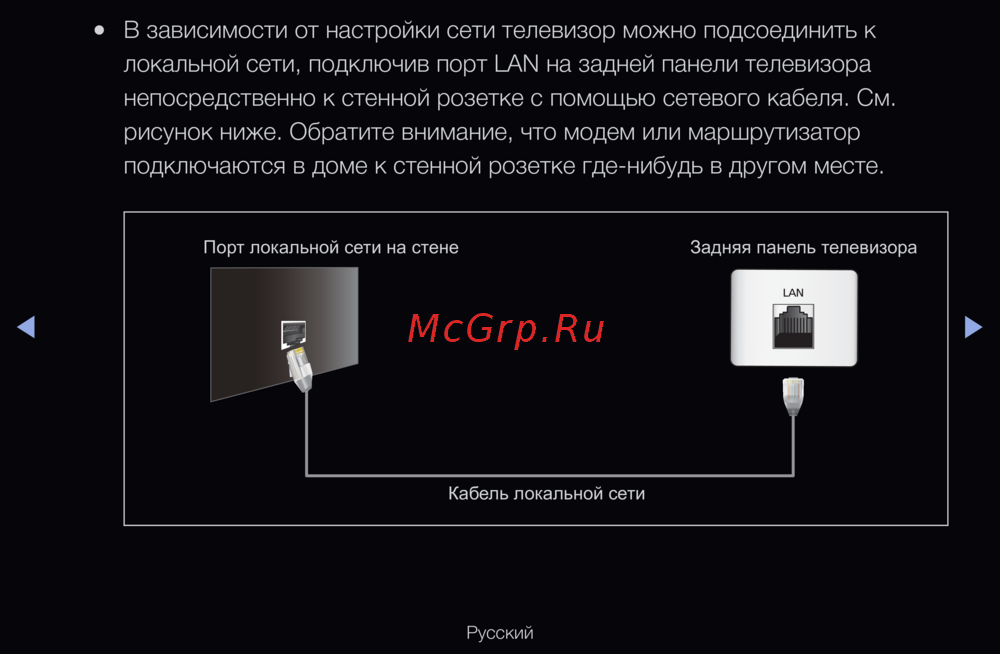 - Существует три способа подключения телевизора к локальной сети с помощью кабеля p.88