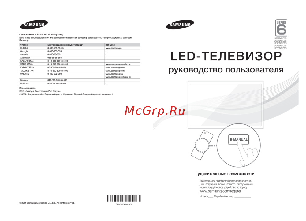 Samsung UE-32 D6100SW — руководство пользователя для LED-телевизоров: советы и поддержка [1/84]