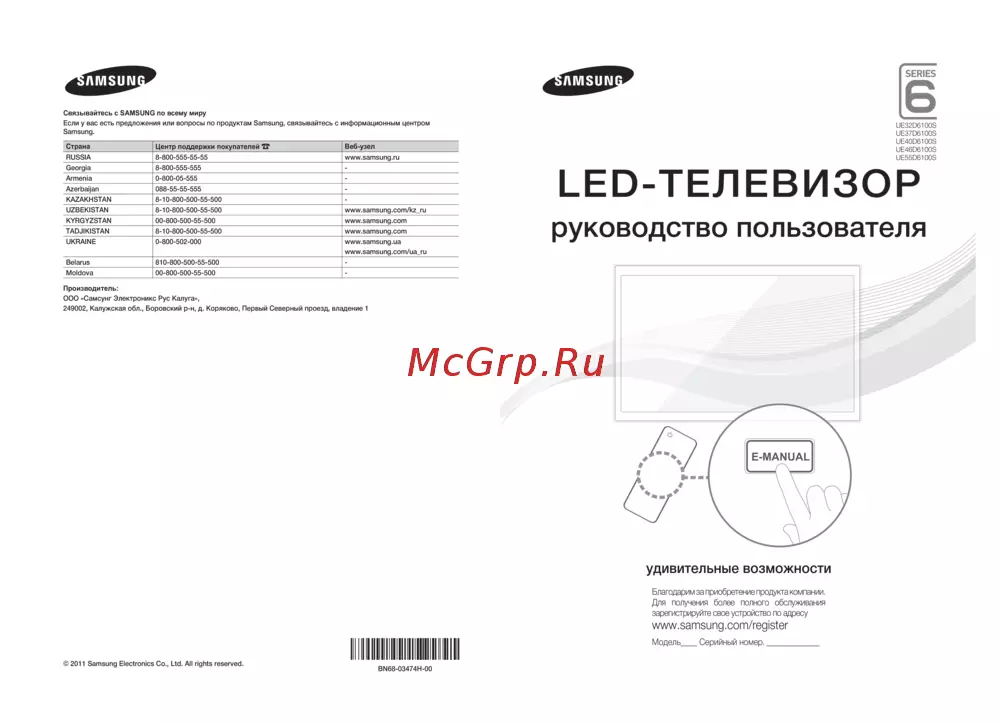 Получите полное руководство пользователя для LED-телевизоров. Узнайте о возможностях, поддержке и регистрации устройства для лучшего обслуживания.