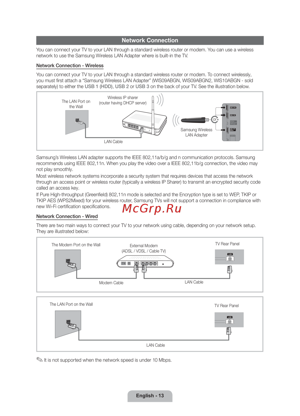 Samsung’s Wireless LAN adapter supports the IEEE 802,11a/b/g and n communication protocols. Samsung