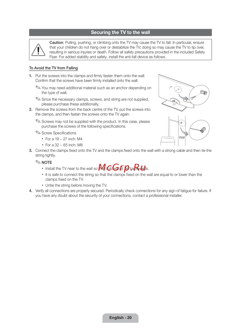 Samsung UE-32 D6100SW — как надежно закрепить телевизор на стене для безопасности [20/84]