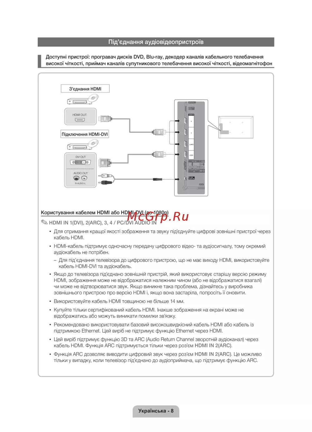 Цей виріб підтримує функцію 3D та ARC (Audio Return Channel зворотній аудіоканал) через