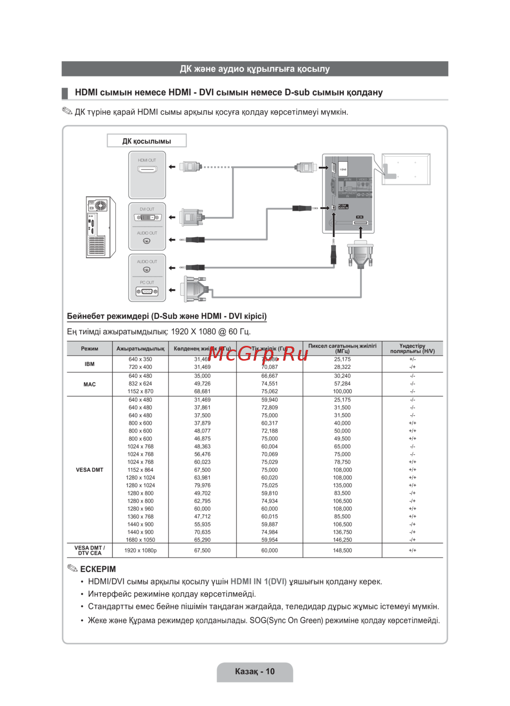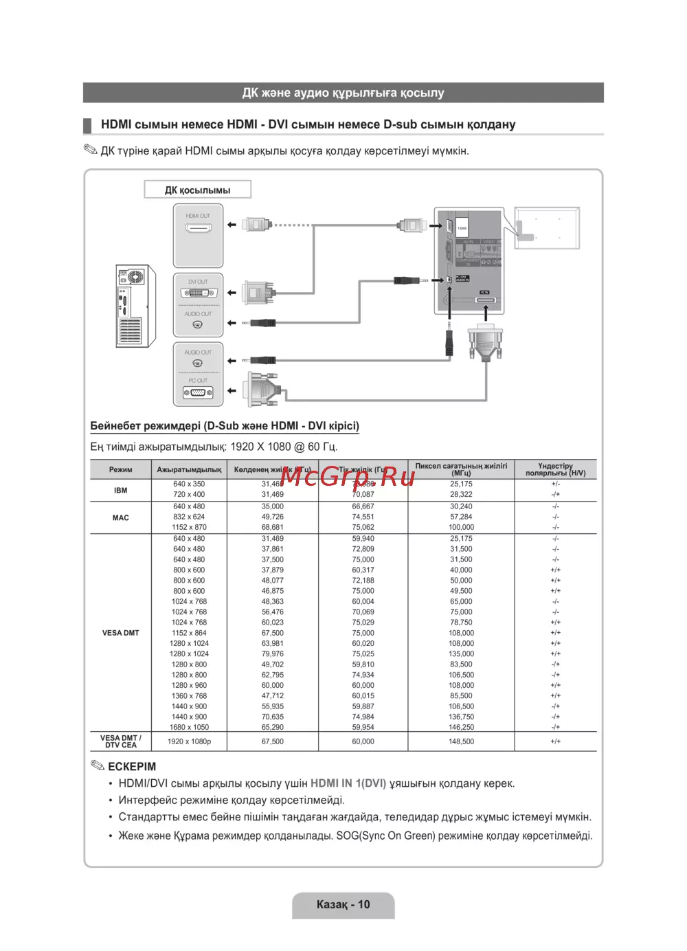 Бұл нұсқаулықта ДК-ны HDMI, DVI және D-sub сымдары арқылы қосу жолдары мен бейнебет режимдері туралы ақпарат берілген. Ең тиімді ажыратымдылықты таңдаңыз.