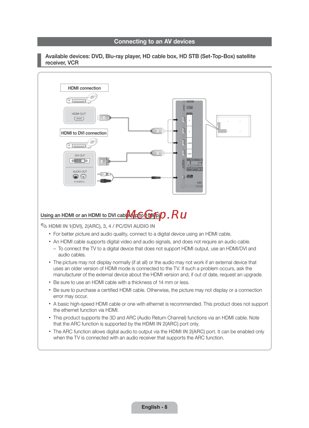 Samsung UE-32 D6100SW — как подключить AV-устройства к телевизору через HDMI [8/84]