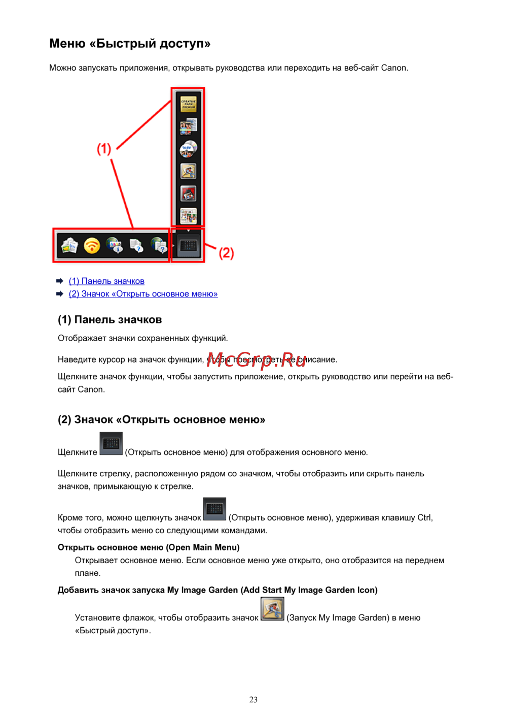 ![Canon Pixma MP230 [23/36] Меню быстрый доступ](/views2/1132251/page23/bg17.png)