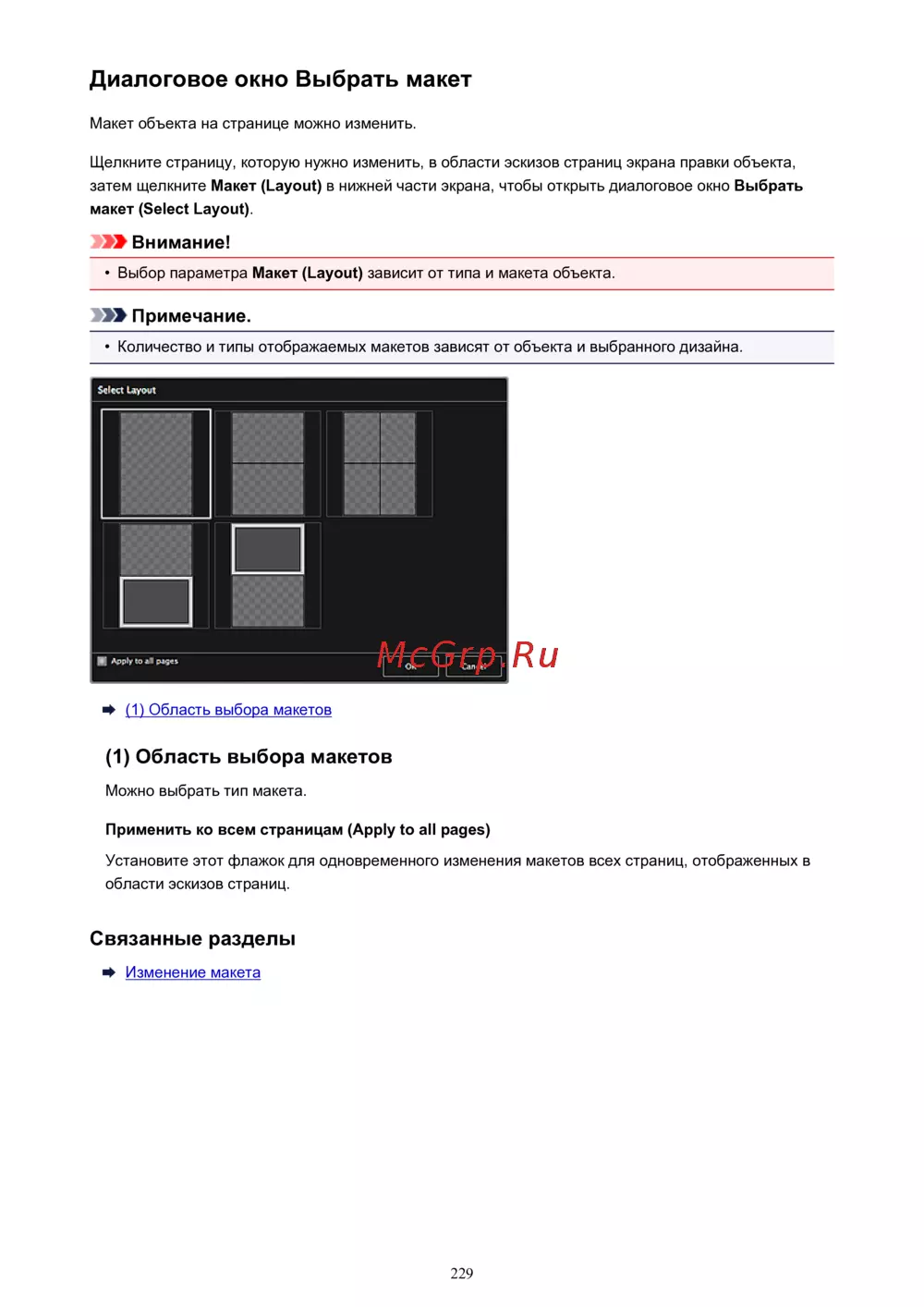 Canon Pixma MP230 — изменение макета объекта на странице: пошаговая инструкция [229/335]