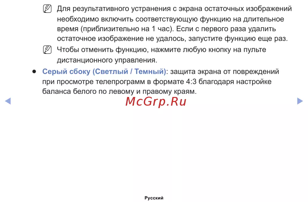 Устраните остаточные изображения с экрана телевизора, включив соответствующую функцию на час. Для защиты от повреждений при просмотре в формате 4:3 используйте настройку баланса белого. Простые инструкции и советы.