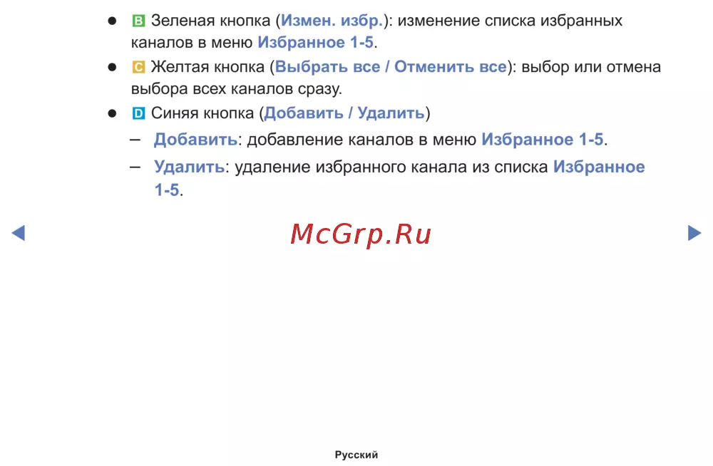 Добавить: добавление каналов в меню Избранное 1-5.