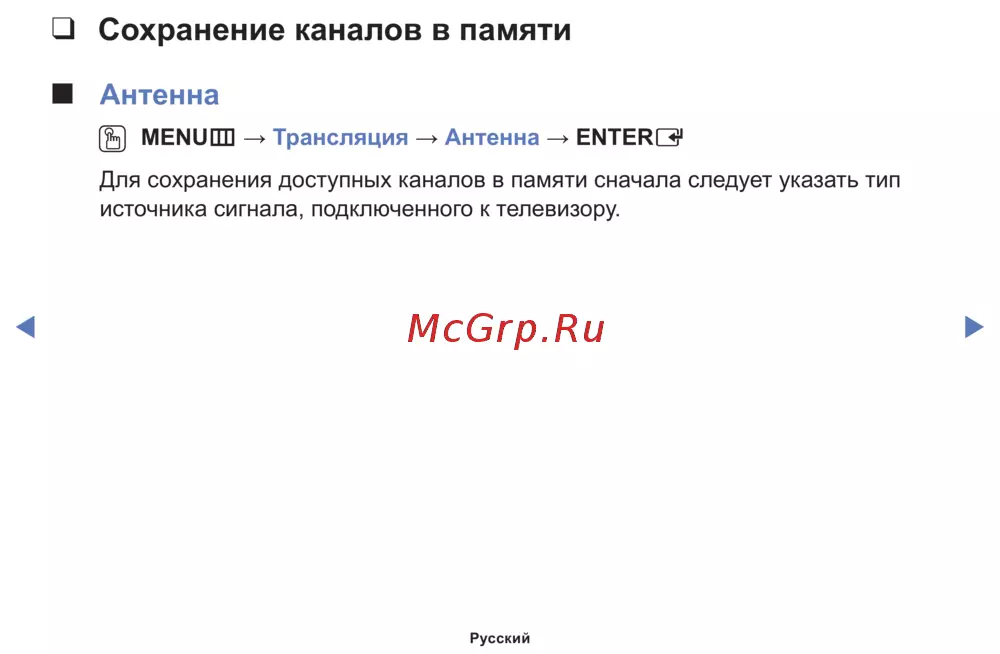 Для сохранения доступных каналов в памяти сначала следует указать тип