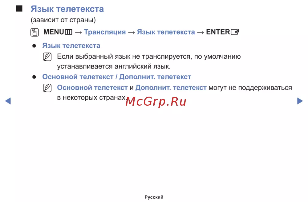Основной телетекст и Дополнит. телетекст могут не поддерживаться