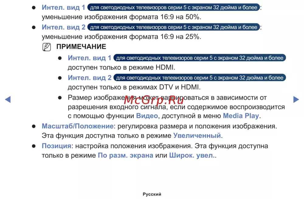 Узнайте о функциях уменьшения изображения и настройках для светодиодных телевизоров с экраном 32 дюйма и более. Оптимизируйте качество просмотра с помощью доступных режимов.