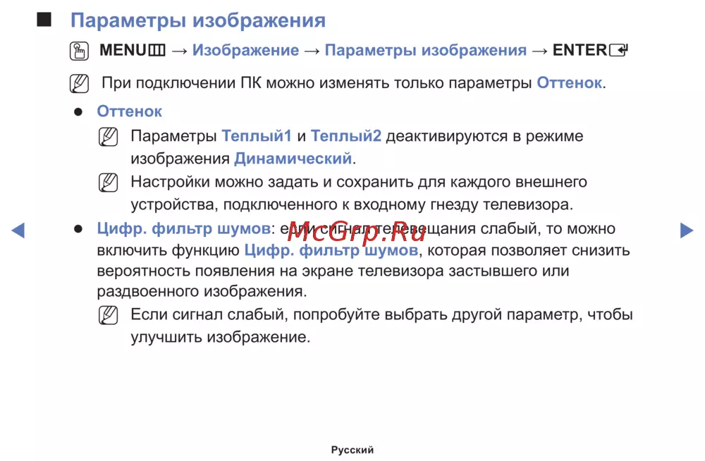 Узнайте, как изменять параметры изображения на телевизоре для достижения лучшего качества. Настройте оттенок и используйте цифровой фильтр шумов для улучшения сигнала.