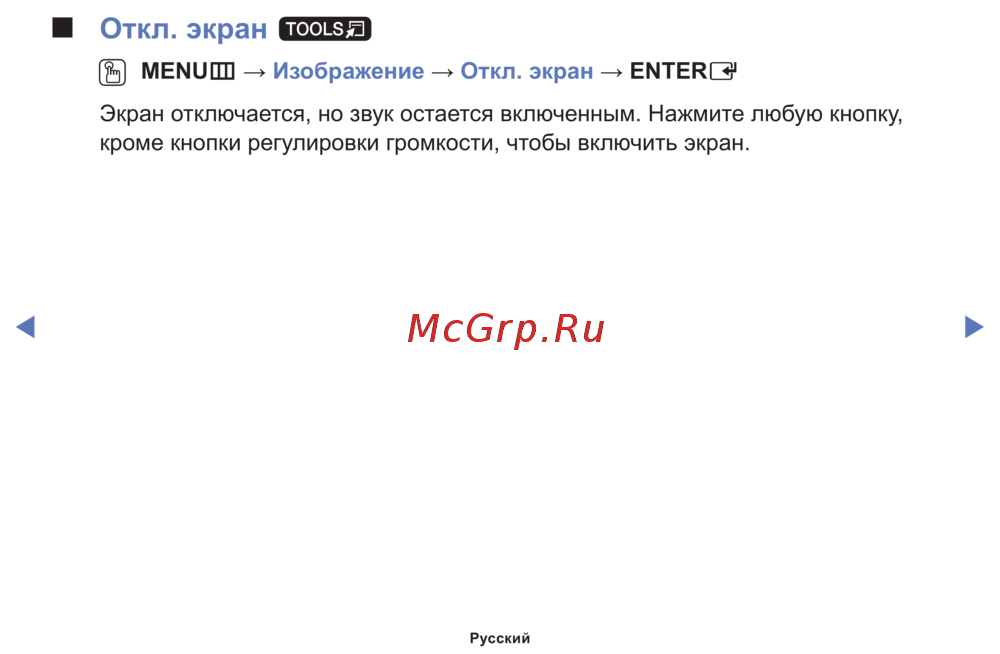 Экран отключается, но звук остается включенным. Нажмите любую кнопку,