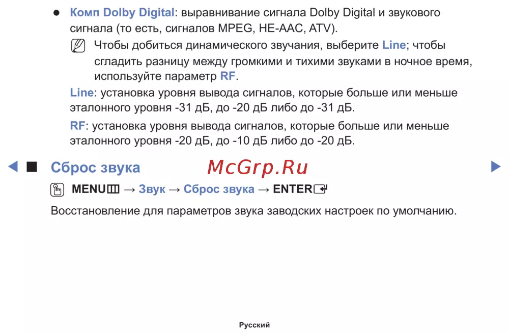 Узнайте, как настроить звук с помощью Dolby Digital и сбросить параметры до заводских настроек. Оптимизируйте звучание для комфортного прослушивания.