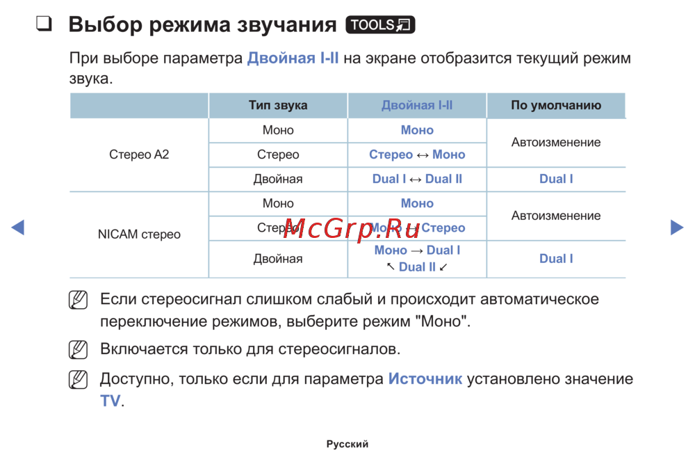 Samsung UE40H5003AK — выбор режима звучания: Стерео, Моно и Двойные настройки [64/125]