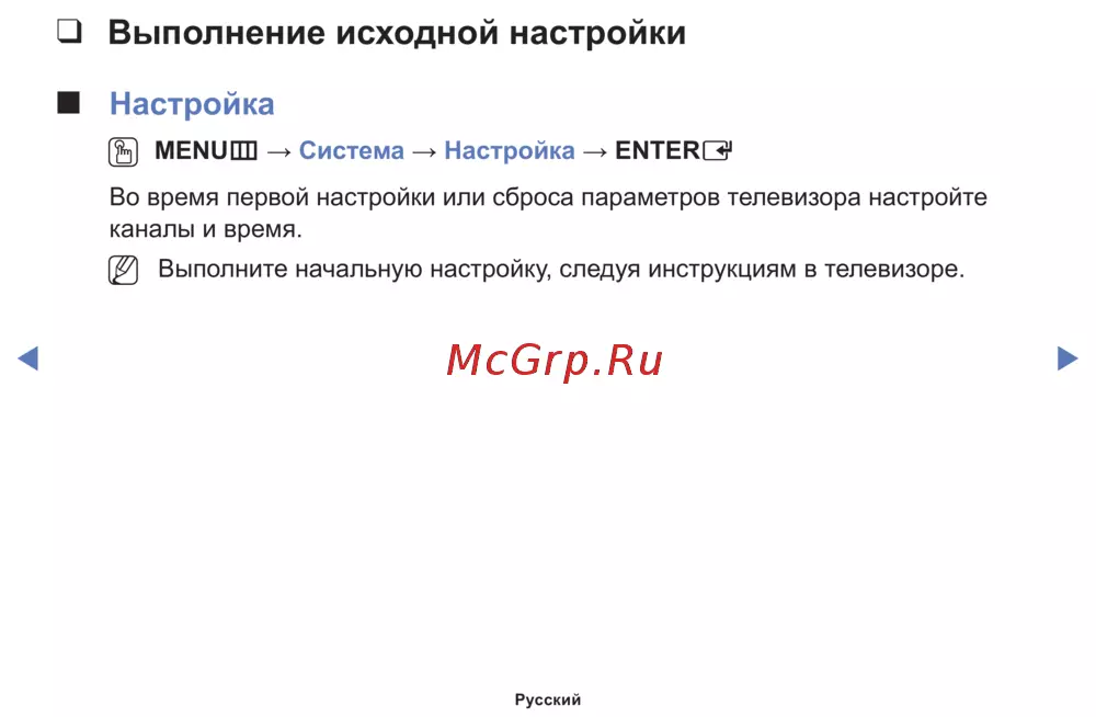 Выполните начальную настройку, следуя инструкциям в телевизоре.