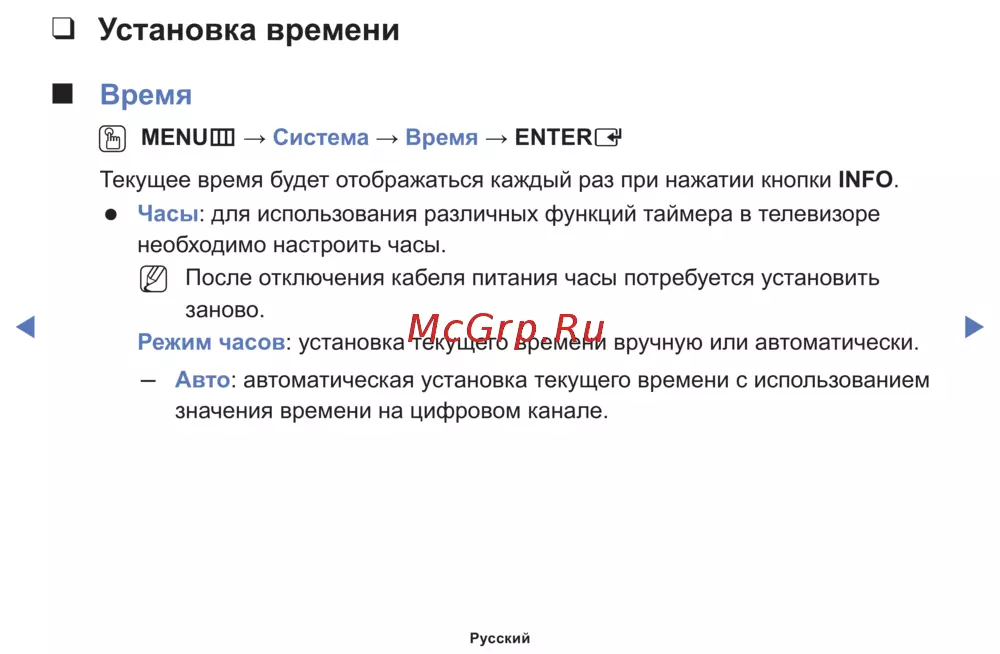 Текущее время будет отображаться каждый раз при нажатии кнопки INFO.
