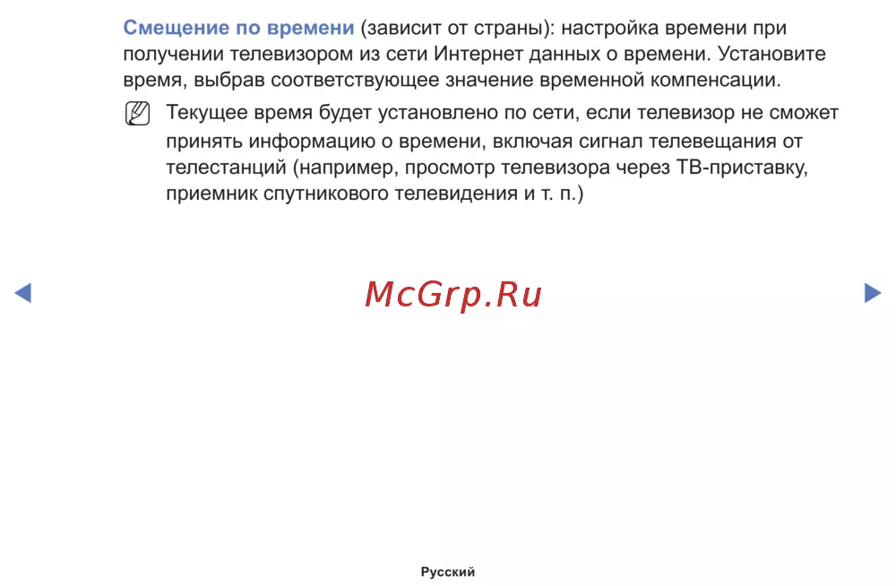 получении телевизором из сети Интернет данных о времени. Установите