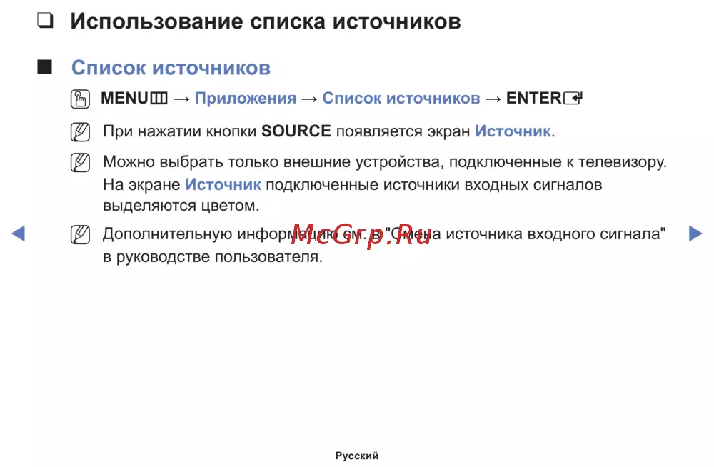 Дополнительную информацию см. в "Смена источника входного сигнала"