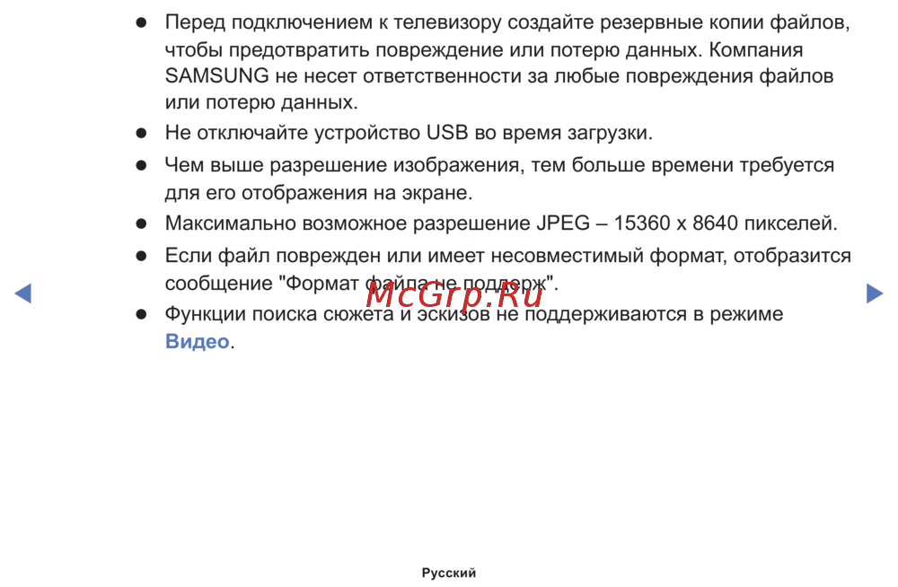 SAMSUNG не несет ответственности за любые повреждения файлов