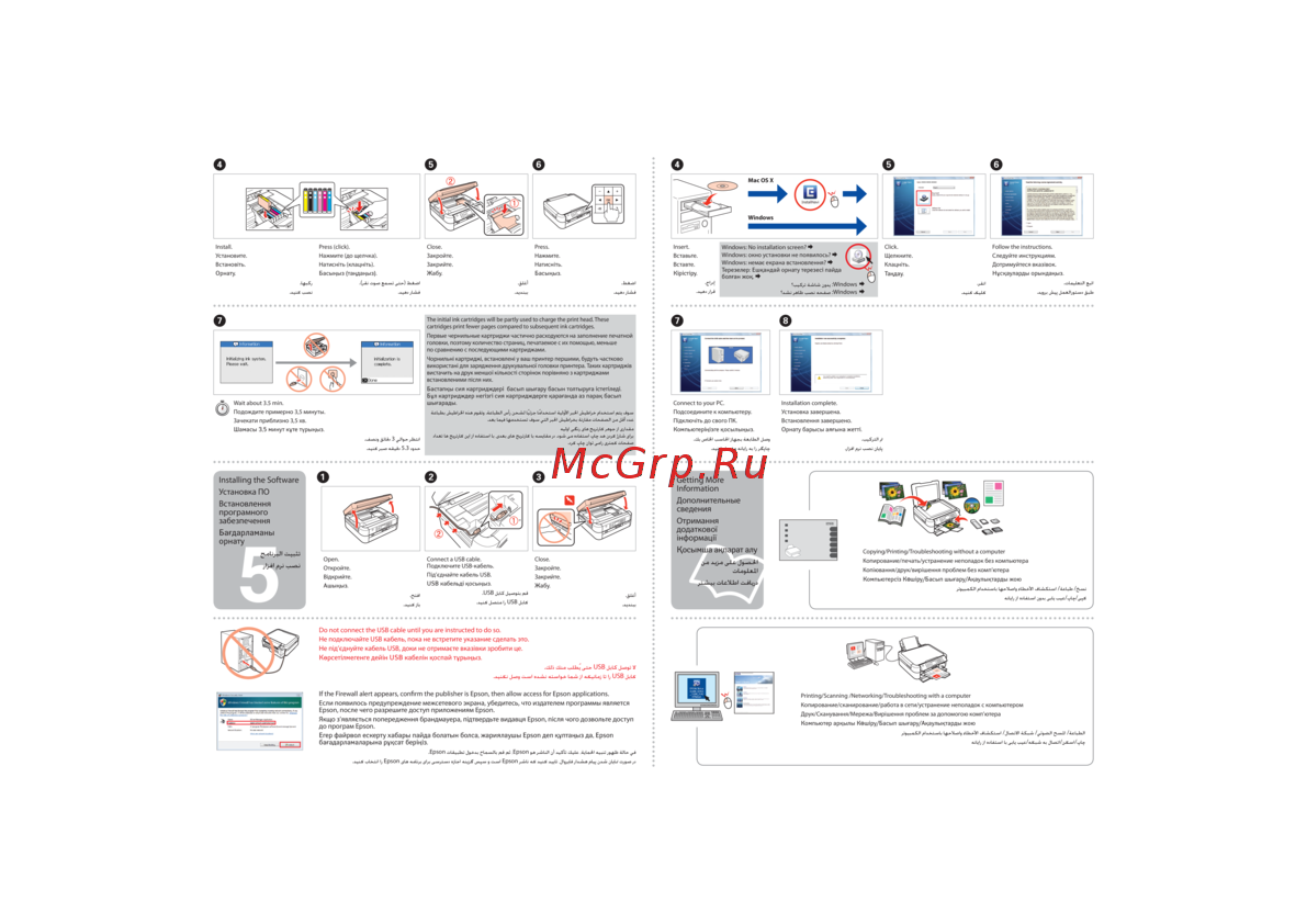 Не подключайте USB кабель, пока не встретите указание сделать это.