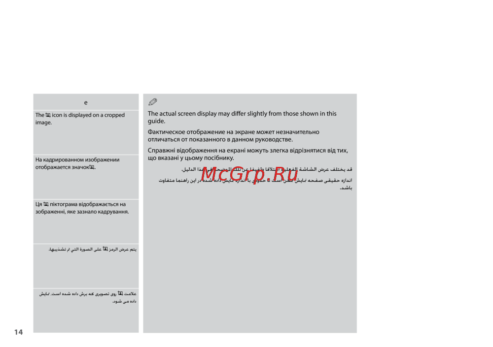 Узнайте, как значок отображается на кадрированных изображениях и как фактическое отображение может отличаться от представленного в руководстве.