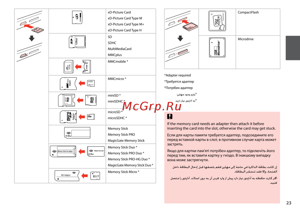 Epson Stylus TX650 — как правильно использовать адаптер для карт памяти [23/88]
