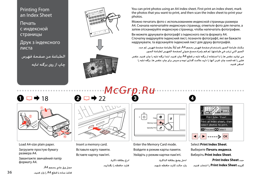 Epson Stylus TX650 — как напечатать фотографии с индексной страницы формата A4 [36/88]