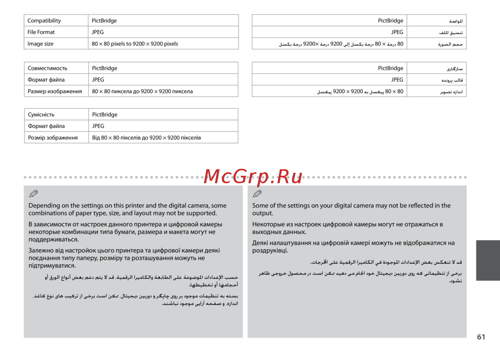 Epson Stylus TX650 — совместимость PictBridge и формат JPEG для печати изображений [61/88]