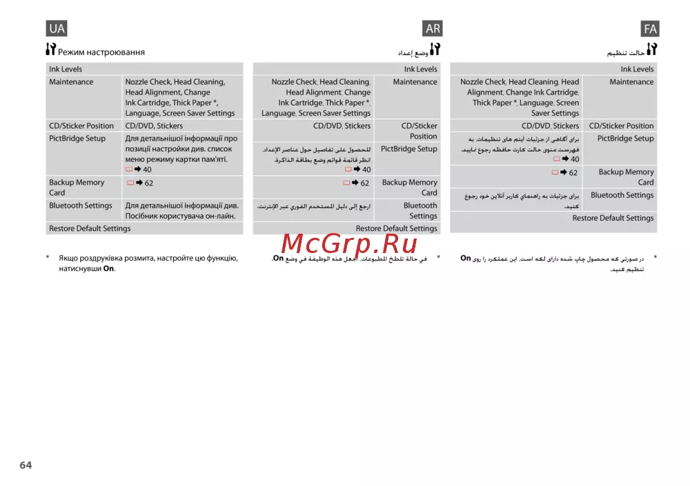 - Список меню режима настройки p.63