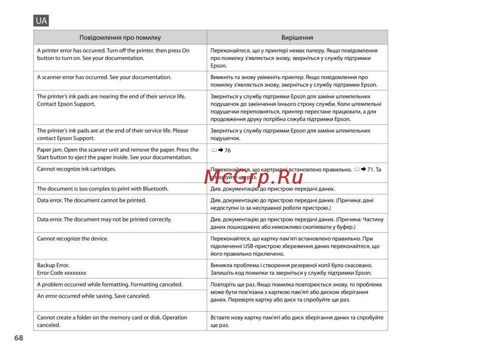 Epson Stylus TX650 — вирішення поширених помилок принтера та сканера [68/88]