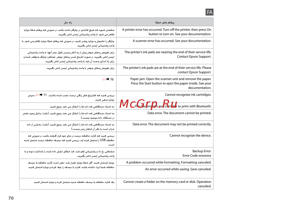 Epson Stylus TX650 [70/88] اطخ یاه ماغیپلح هار