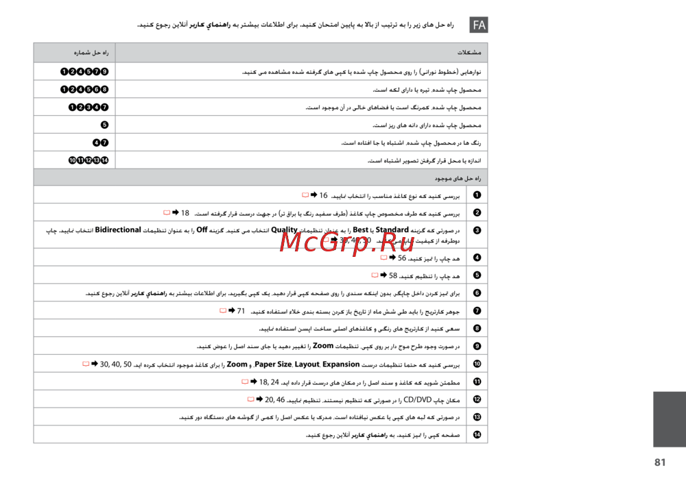 Epson Stylus TX650 [81/88] دینک عوجر نیلانآ ربراک يامنهار هب رتشیب تاعلاطا یارب دینک ناحتما نییاپ هب لااب زا بیترت هب ار ریز یاه لح هار